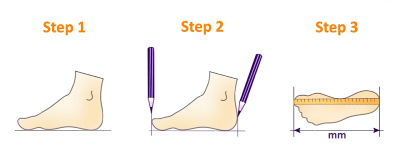 3. Take a ruler and measure the distance between the heel and your longer toe.
